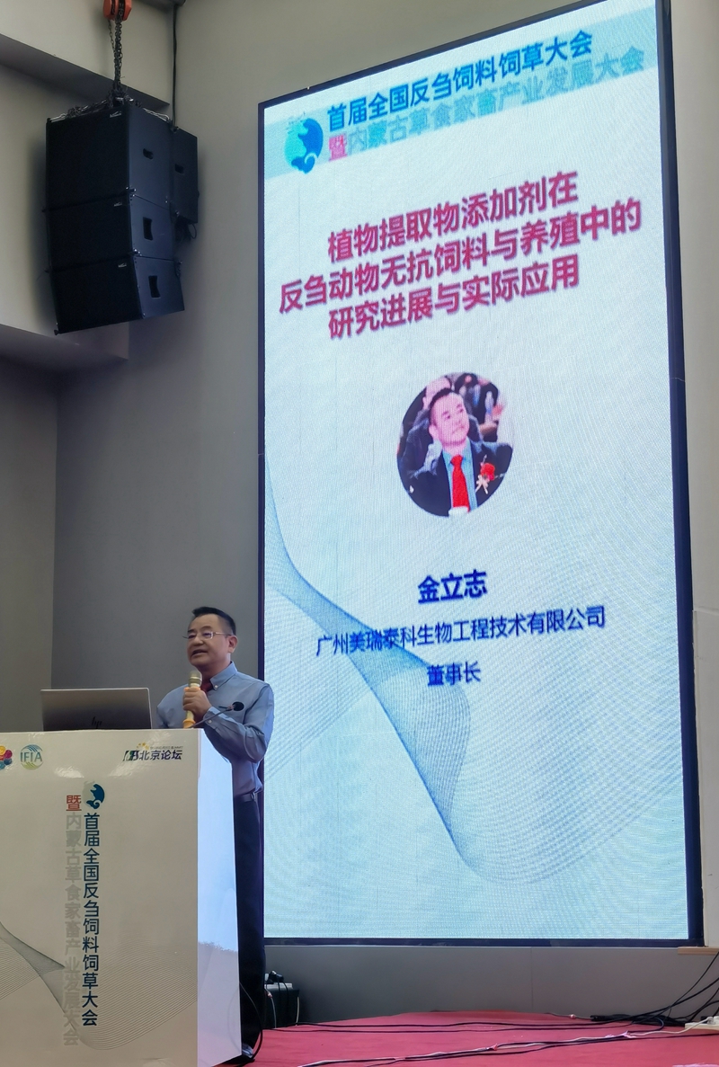 “碳中和与无抗”成了近日在内蒙古呼和浩特市召开的“首届全国反刍饲料饲草大会”的主要关键词。大会有近千名来自全国各地的领导、行业精英和同行专家出席,美瑞泰科金立志博士应邀做了学术报告。